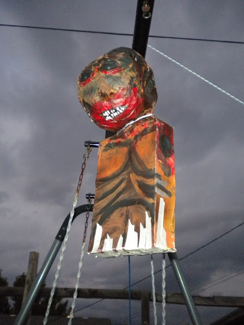 The last layers I added a ton of newspaper around its neck. At one point I took a wad of newspaper, dipped it in the paste and wrapped it around its neck like a....neck brace!! Then added a flat piece over the neck and up onto the face and down onto the body to "hide" the bunched up newspaper.